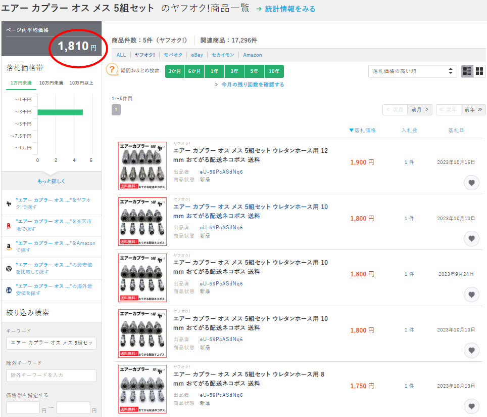 ヤフオクで売れている物と同じものを特定するのは難しいかもしれませんが