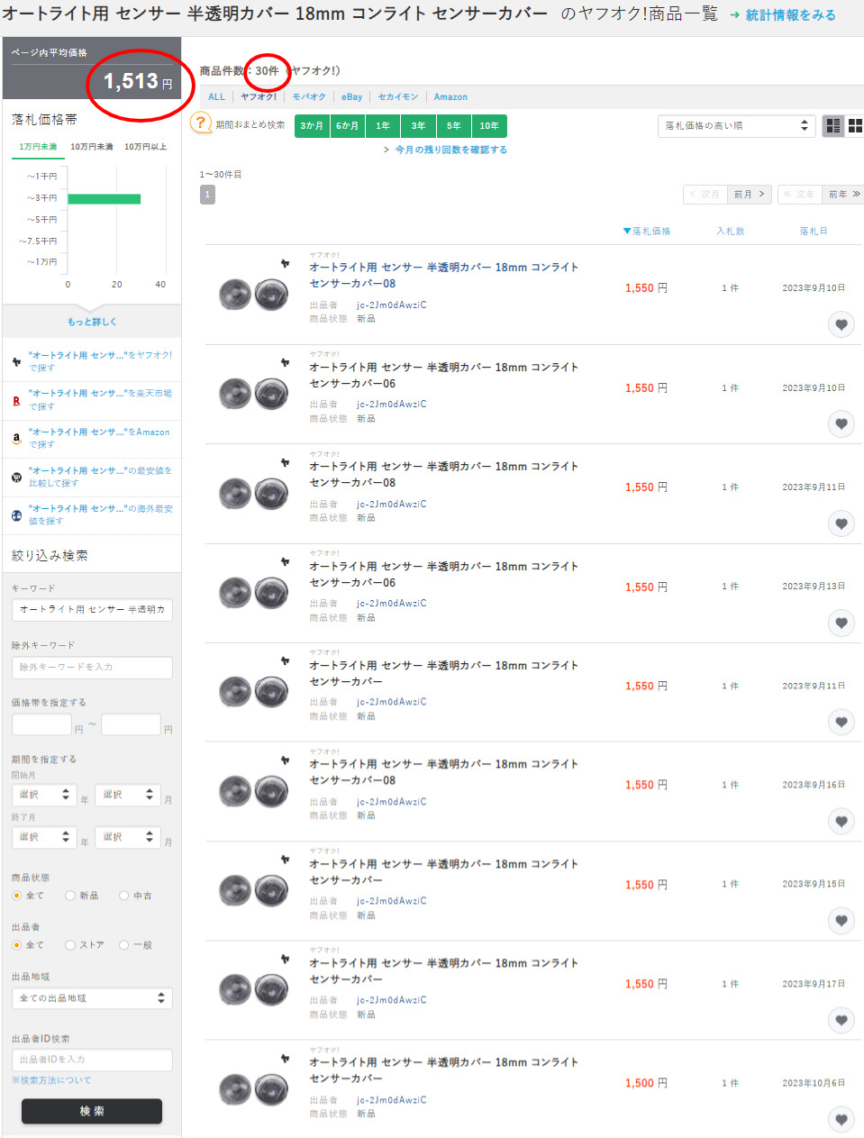 半透明の物に絞り込みましたがそれでも30件と沢山売れています。
