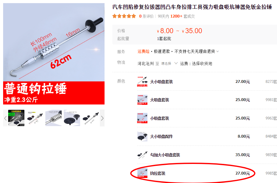 キーワード 「汽车凹陷修复拉拔器凹凸车身拉排工具强力吸盘吸坑神器免钣金拉锤」