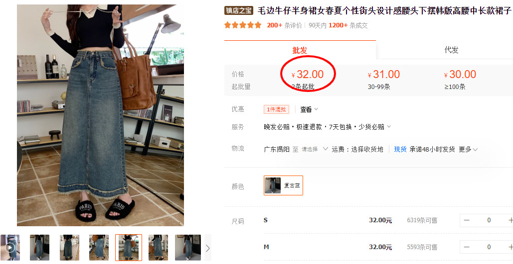 キーワード 「毛边牛仔半身裙女春夏个性街头设计感腰头下摆韩版高腰中长款裙子」