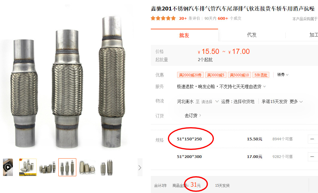 キーワード 「201不锈钢汽车排气管汽车尾部排气软连接 消声抗噪」