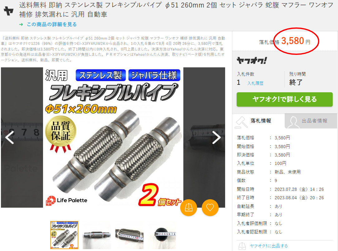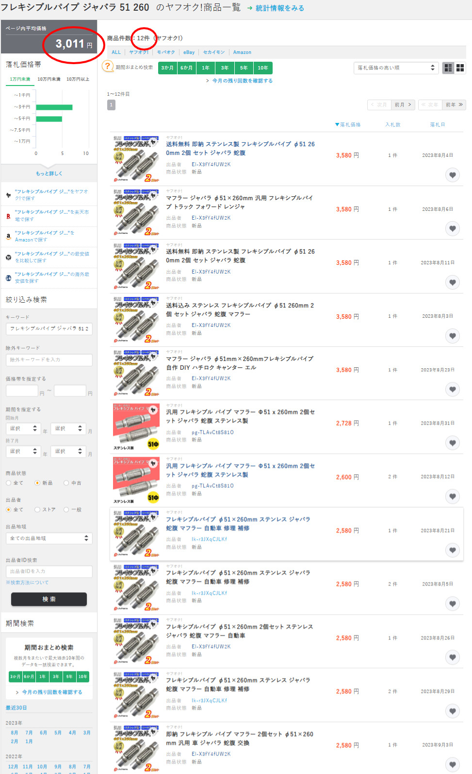 平均落札価格3,011円で平均送料が666円なので合計平均落札価格3,677円