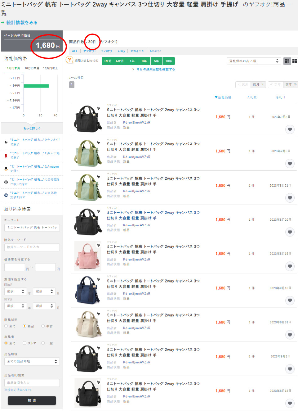 色で絞り込みできませんでしたが各色売れていて黒だけで13件の落札です。
