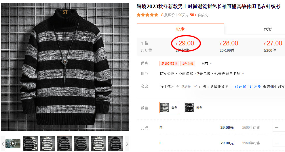 キーワード 「秋冬新款男士时尚潮流拼色长袖可翻高龄休闲毛衣针织衫」