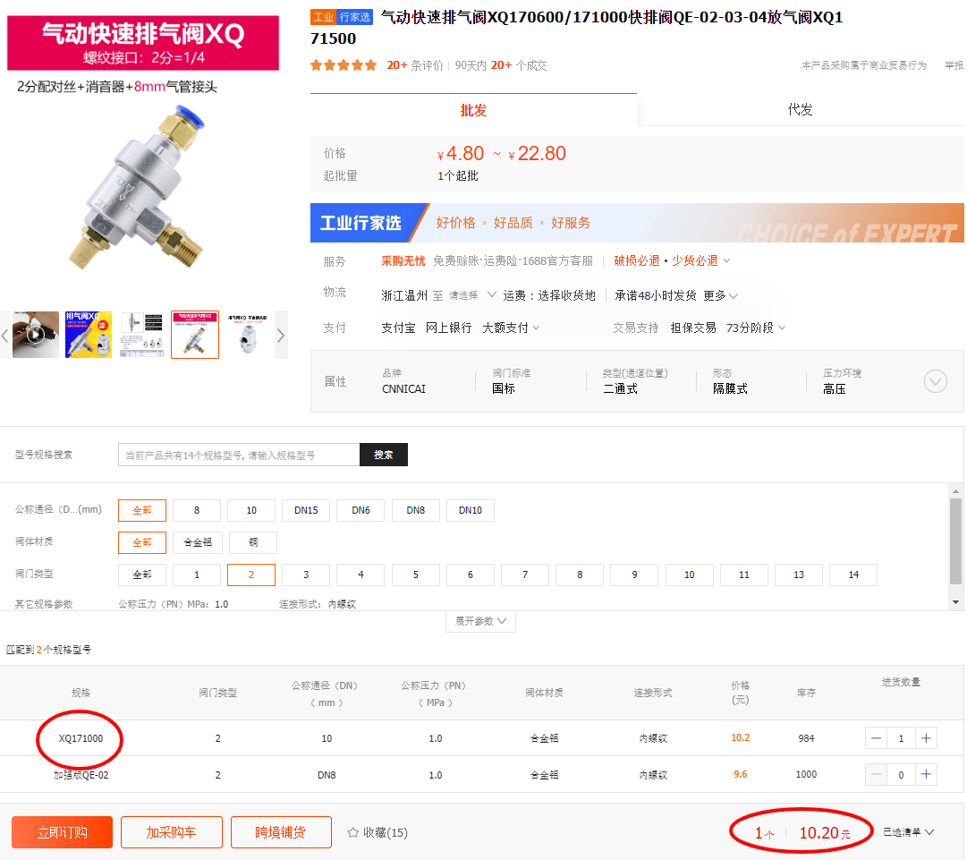 キーワード 「气动快速排气阀XQ 放气阀XQ1」