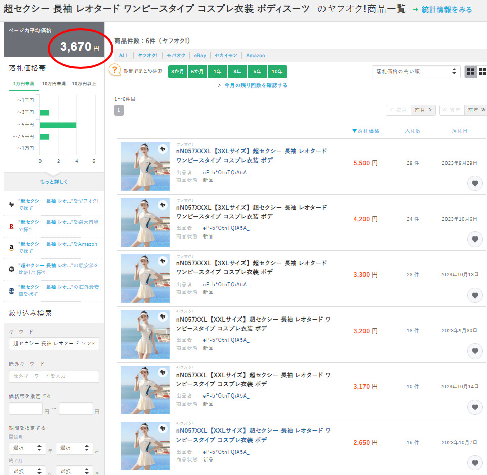 1円スタートで平均落札価格3,670円、送料は一律370円なので