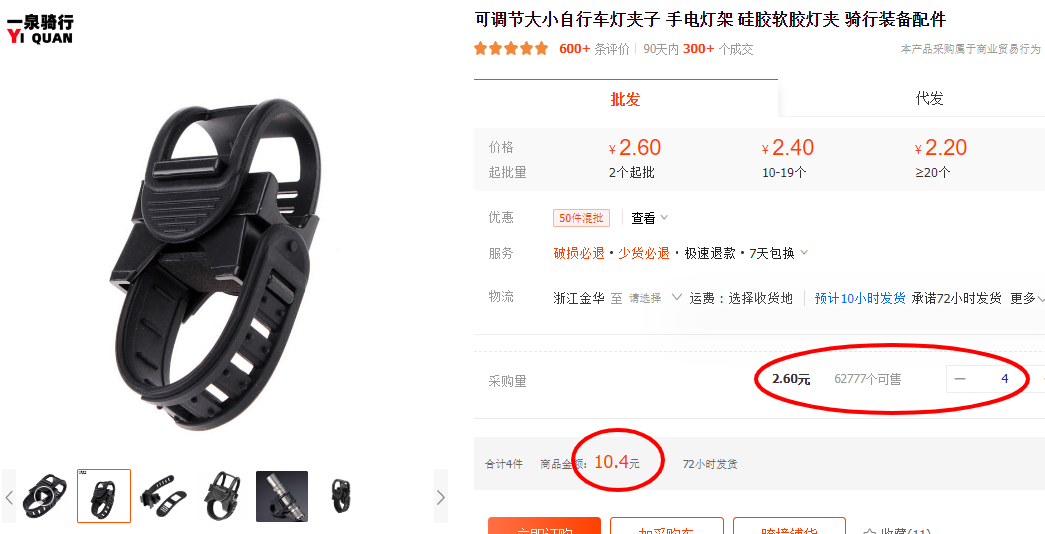 アリババでは自転車用品、懐中電灯をハンドルに固定する用品として売っています。