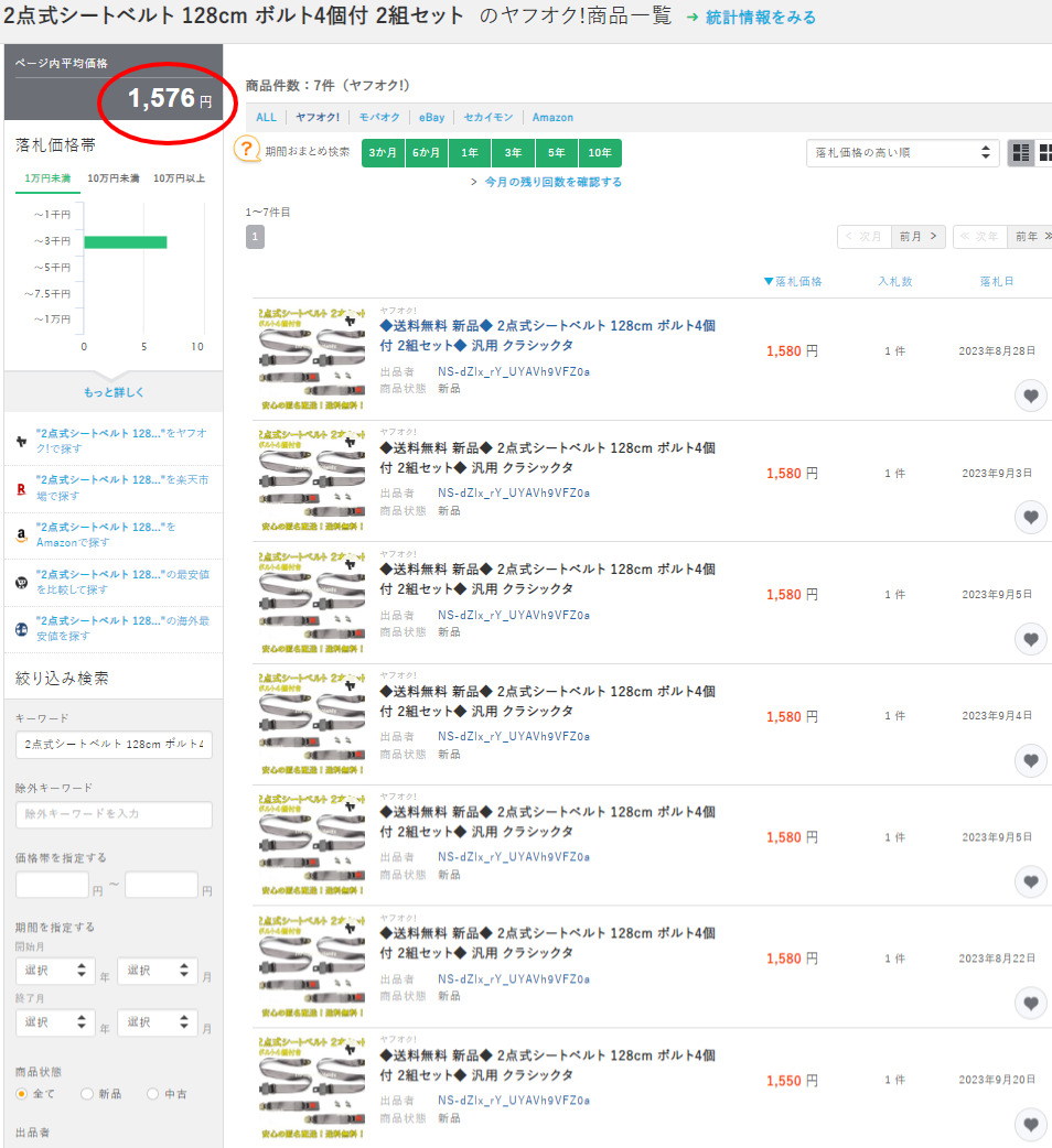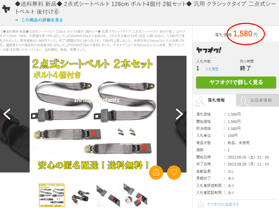 ヤフオクではボルト付なのでボルト付を仕入れるか、シートベルト単体で