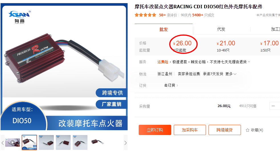 キーワード 「摩托车改装点火器RACING CDI DIO50红色外壳摩托车配件」
